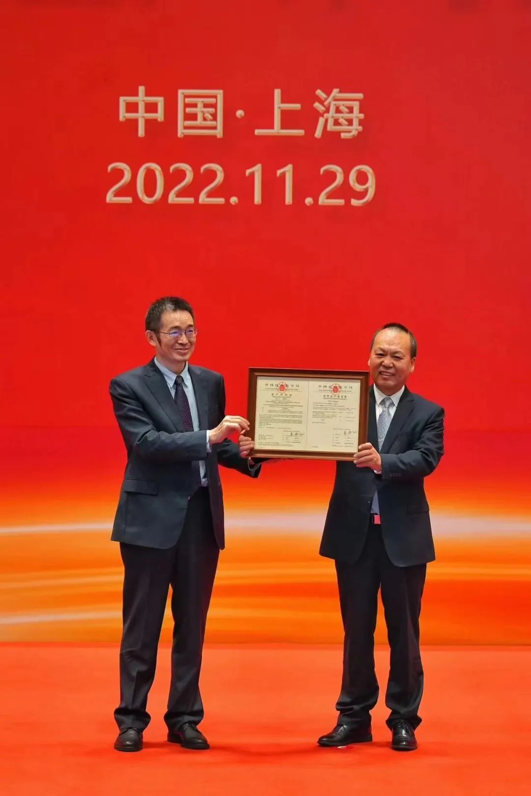 ▲民航華東地區管理局局長 姜春水向中國商飛公司黨委副書記、總經理 趙越讓****頒發C919飛機生產許可證