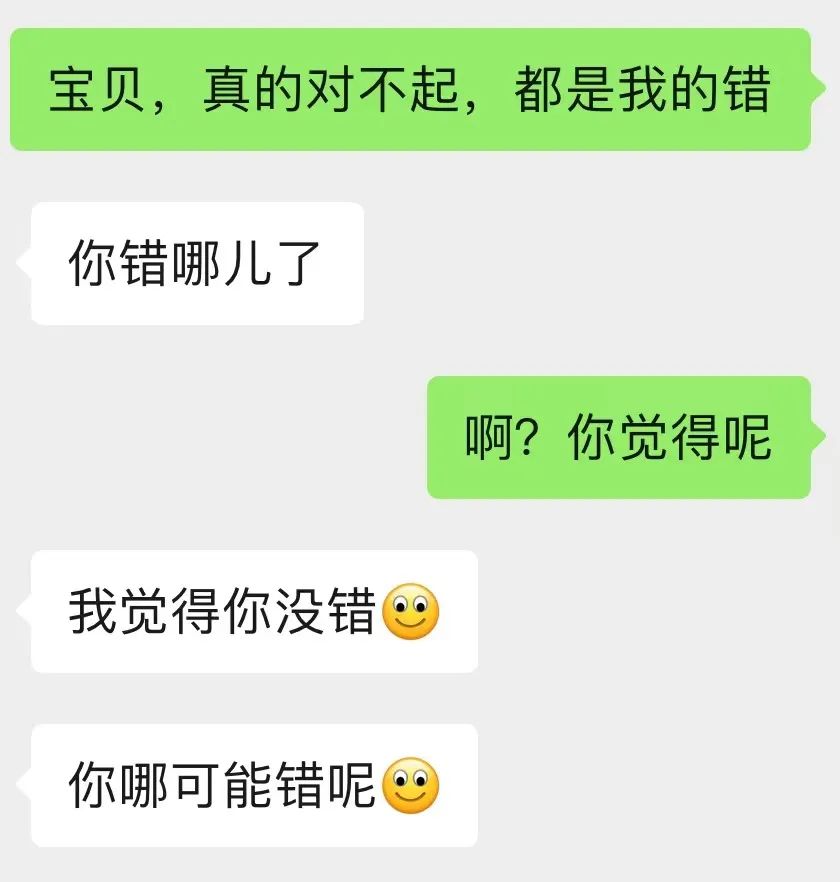 如果你想明白錯哪兒了,細細道來即可。但如果還沒想明白,我的建議是先拋一句**“我錯就錯在沒有顧及你的感受”,所有場景都基本適用。然後轉移重點講講自己明確的錯、曾經的錯、多方面的錯**,讓對方覺得你舉一反三,真的在好好反思: