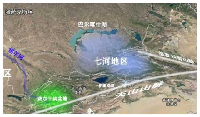 圖:七河地區,從名字上就知道其是河流很多的地區。巴爾喀什湖的西部還是淡水。如果打通天山的隧道,把流入巴爾喀什湖的伊犁河河水導入北疆,完全可以把北疆的數萬平方公里沙漠變成良田。戈壁中的克拉瑪依,就是從北疆的額爾齊斯河調水的。