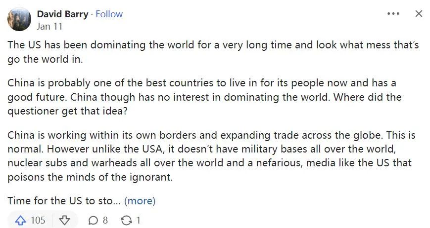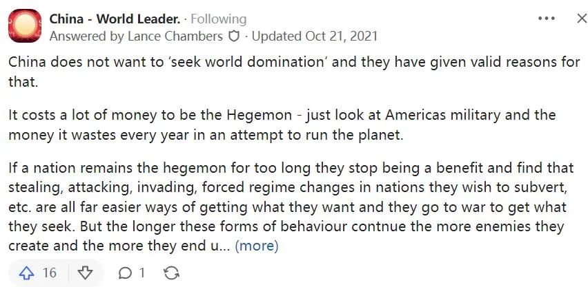 在外網有一個話題:**中國是否在謀求世界霸主地位?**一些國外網民發表了自己的看法。