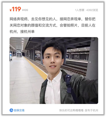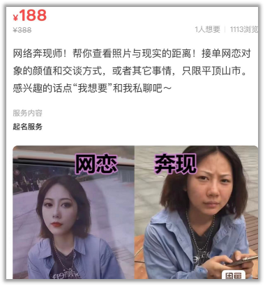 我在想,如果這個市場越來越大,會不會兩個網戀情侶在見面之前都要派出奔現師去一探究竟。