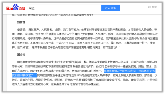 百度百科説,網戀就是見光死的自我釋放罷了。
