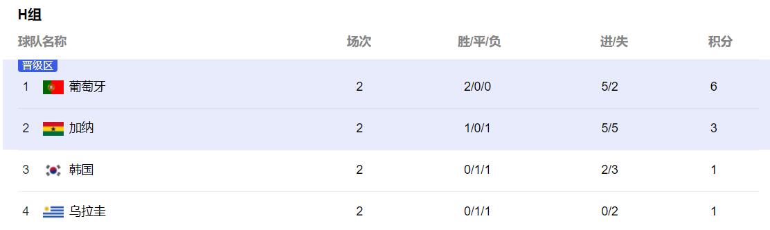 兩輪賽後,僅有三支球隊提前晉級——法國、巴西、葡萄牙。東道主卡塔爾和加拿大兩支球隊則已經提前出局。