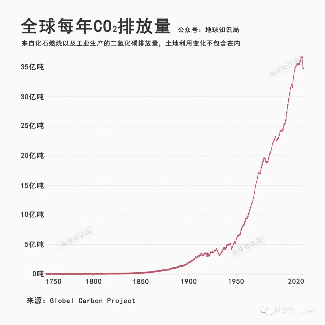 全球二氧化碳排放量自工業革命後急速飆升▼