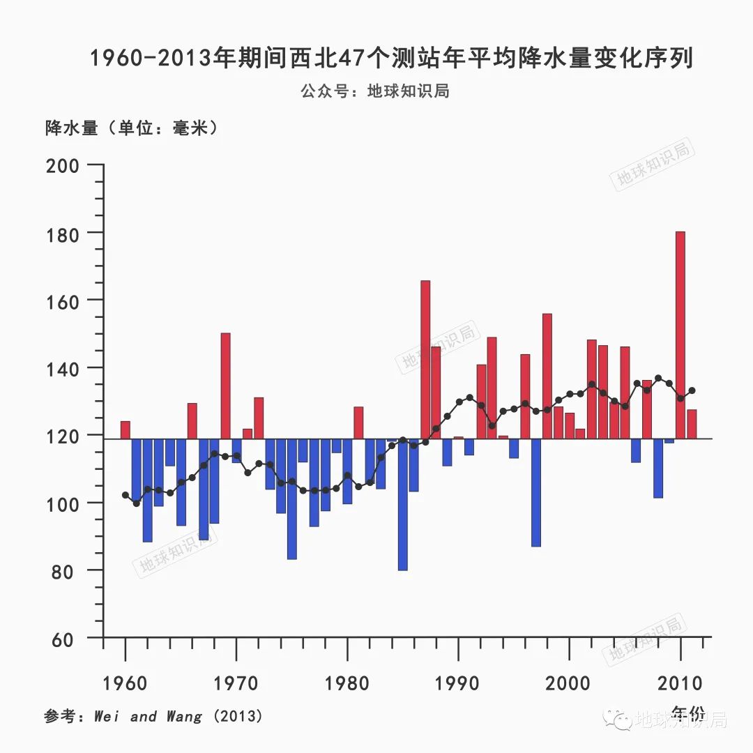 如果考慮到西北地區本身降水稀少,這幾十年來降水的變化不可謂不大。