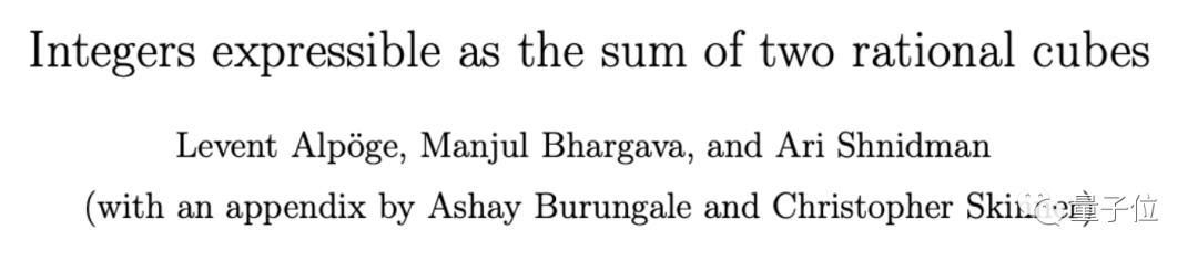 值得一提的是,其中他研究的關於“橢圓曲線三次方程的有理數解”也是獲獎原因之一,這次研究的兩個有理數的立方和問題,就是其中的一種特殊求解情況。