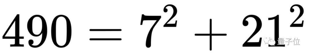 這裏7除以4餘3,它的指數為2,符合偶數的要求,因此整數490可以用兩個有理數平方和表示: