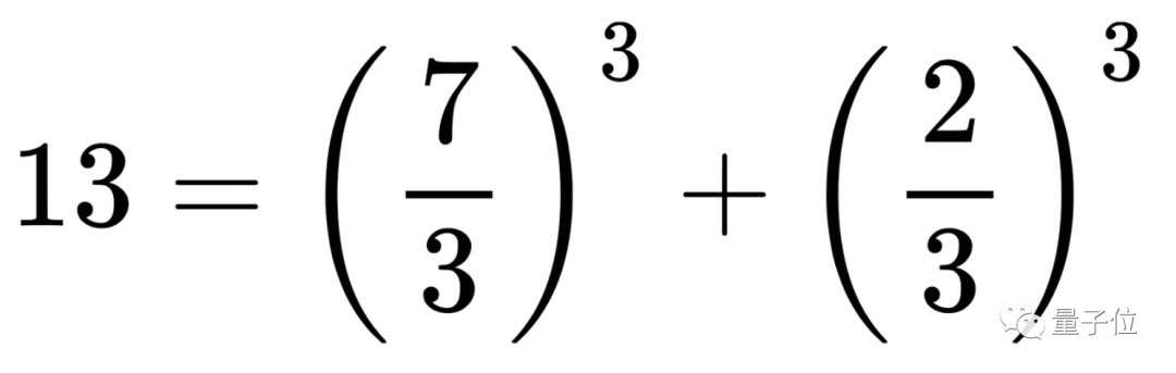 例如整數13,就可以被“拆”成有理數7/3的立方、以及有理數2/3的立方總和: