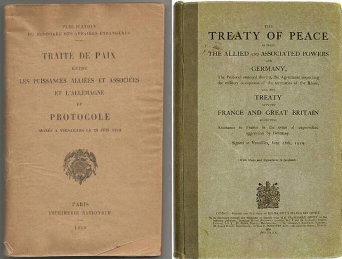 這一天,《凡爾賽條約》正式簽署。它沒有像傳統要求的那樣只用法語撰寫,而是有兩個對等的版本,法語和英語。