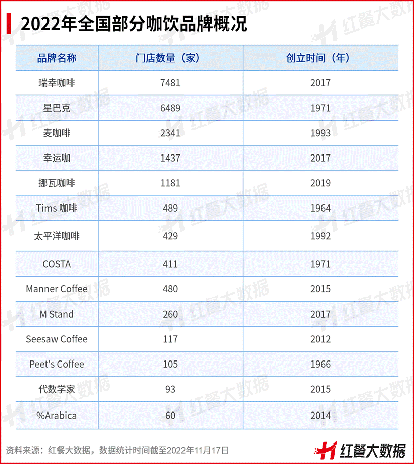 星巴克作為全球最大的連鎖咖飲品牌,以“第三空間”定位而著稱,強調咖飲的社交屬性和商務屬性,在國內擁有較多的擁躉者。據紅餐大數據,截至2022年11月17日,國內星巴克的門店數達到了6489家。
