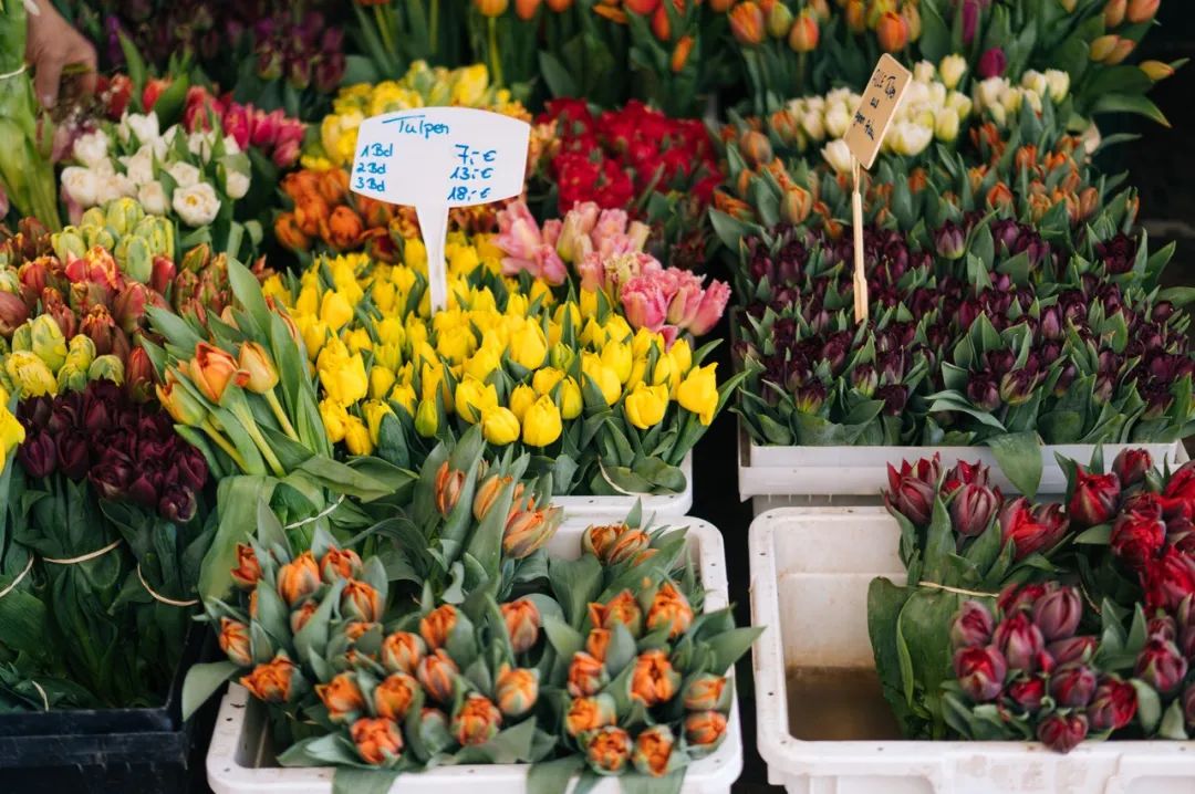 鮮花市場中各色的花朵,其中不乏黑色花朵的身影。圖庫版權圖片,不授權轉載