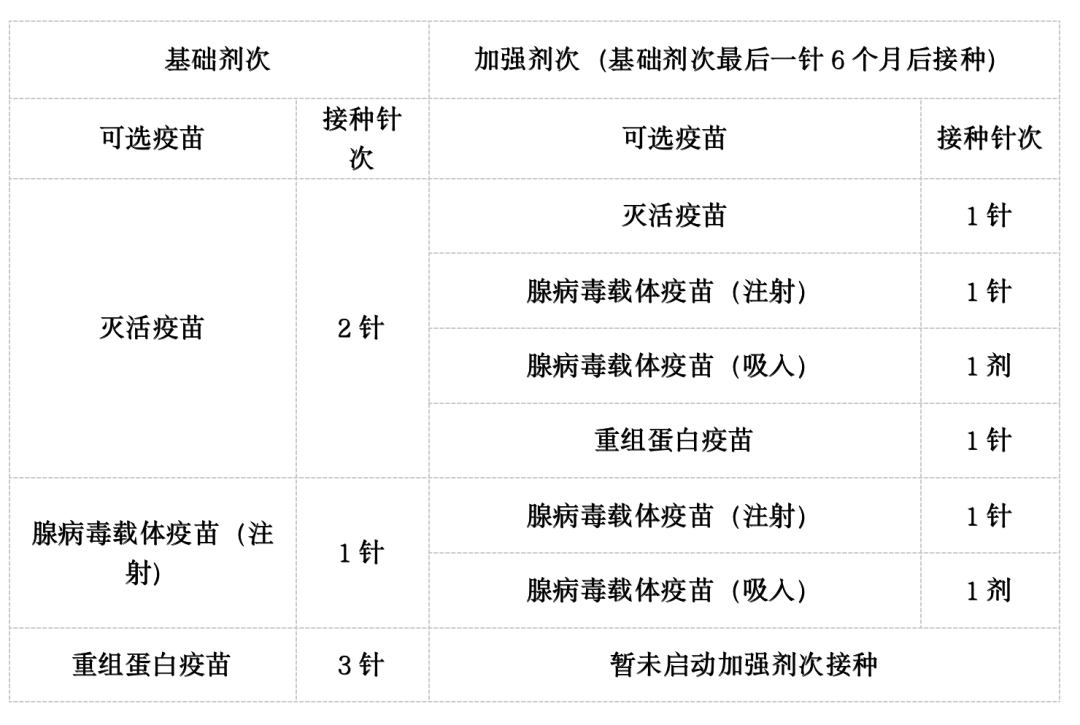 基礎免疫與加強針可選疫苗列表,圖片來源:參考文獻[3]