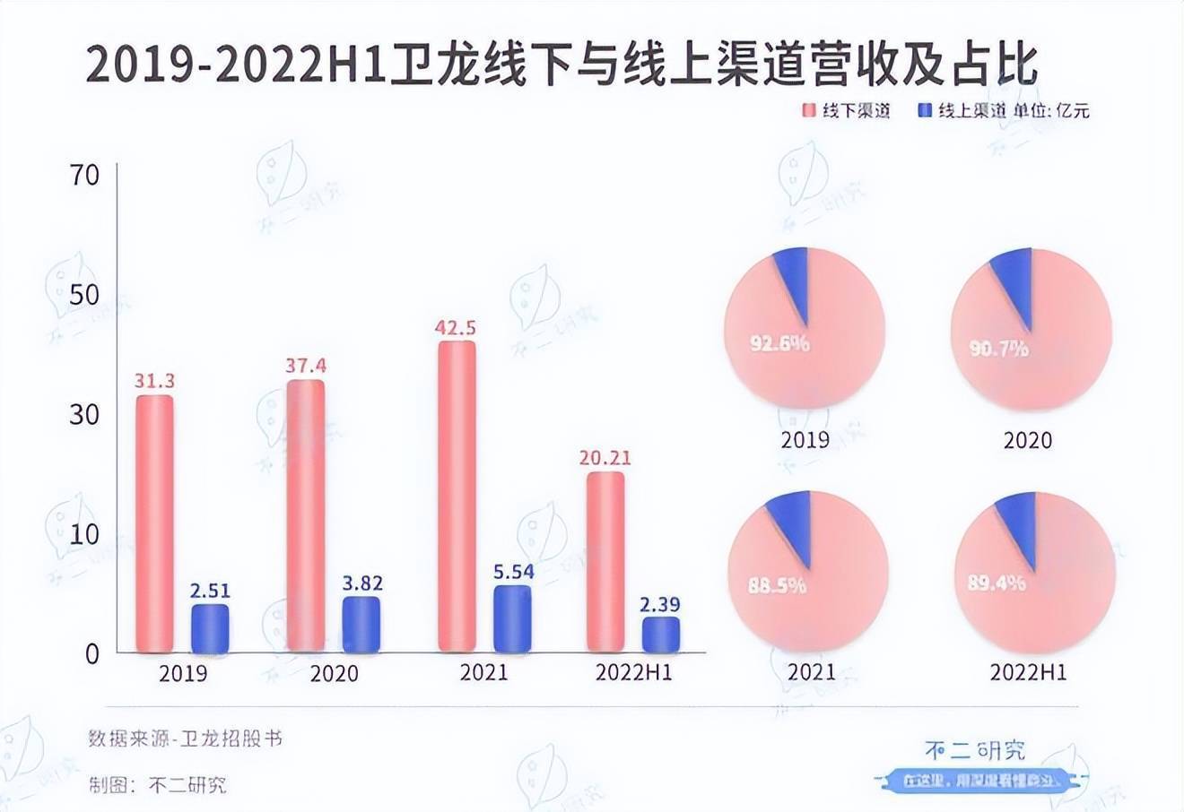 儘管衞龍也在線上持續發力:2019-2022上半年,線上收益分別為2.51億、3.82億、5.54億和2.39億,但營收佔比僅為7.4%、9.3%、11.5%和10.6%。