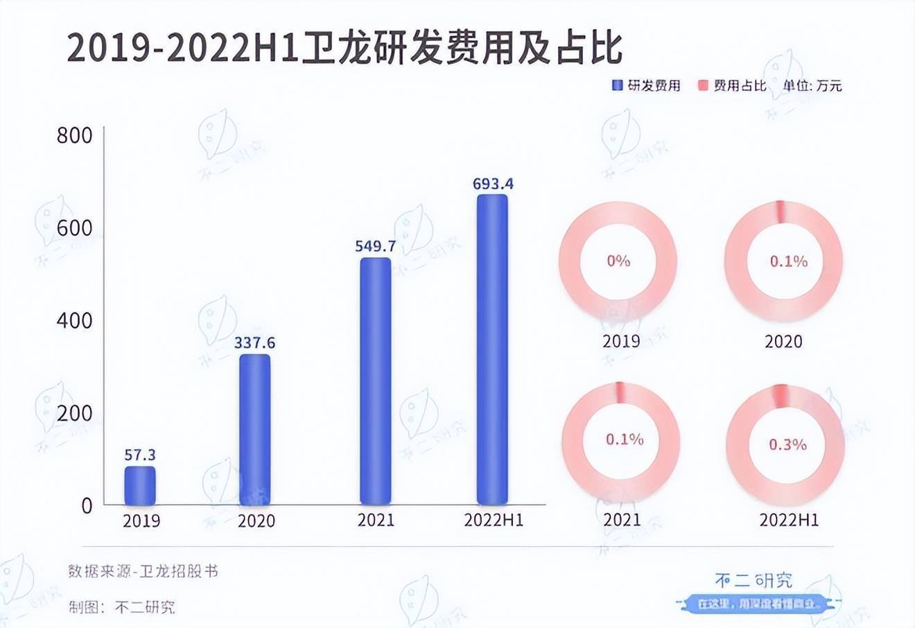 門檻低也體現在較低的研發費用上。招股書數據顯示,2019-2022上半年,衞龍的研發投入分別為57.3萬、337.6萬549.7萬和693.4萬,僅佔總收入的0.3%左右。