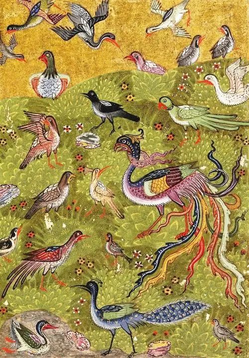 鳳凰變成了西牟鳥,它修長飄逸的尾羽裝點了許多波斯畫作。