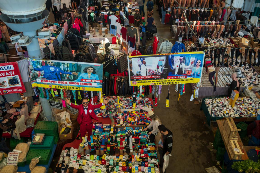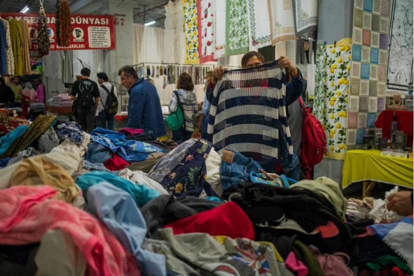 成衣價格的大幅上漲也使得線上和線下的二手服裝買賣火熱了起來,甚至有區政府協助舉辦二手服裝集市。在這之前,淘二手服裝的多是低收入羣體和古着愛好者。在伊斯坦布爾亞洲區哈桑帕夏市場舉行的大型集市上,售賣蔬果、服裝、日用、古董等各類商品的攤位琳琅滿目,來購物的人也非常之多。麥合邁特先生一直售賣二手服裝,他賣的女裝、絲巾等多是從土耳其和歐洲各地收來的遺失物。他説近一兩年來買二手服裝的土耳其人越來越多,光顧的人多是學生、低收入者,也有對二手服裝感興趣的年輕人,甚至偶爾會有明星來淘貨。哈桑先生售賣外貿尾單、有小瑕疵的服裝,他説土耳其人的購買力下降了很多,這裏面也有因大量外國人湧入土耳其而造成租金高漲因素的影響。他的生意因為外國人的消費還不錯——在他的攤位上,一件長袖T恤的價格是50里拉。外國人覺得價格便宜便會買很多件,而土耳其人就只挑一兩件。哈桑説:“要想知道人們的購買力怎樣,就看一下他們手裏拎着的購物袋裏有多少東西。”