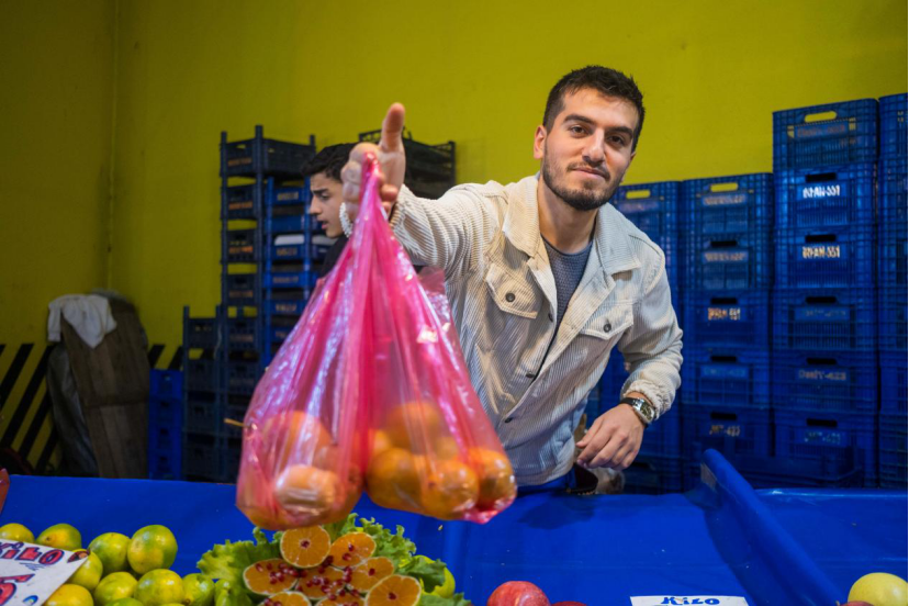 ● 蔬菜攤主塞拉米整理攤位上的黃瓜