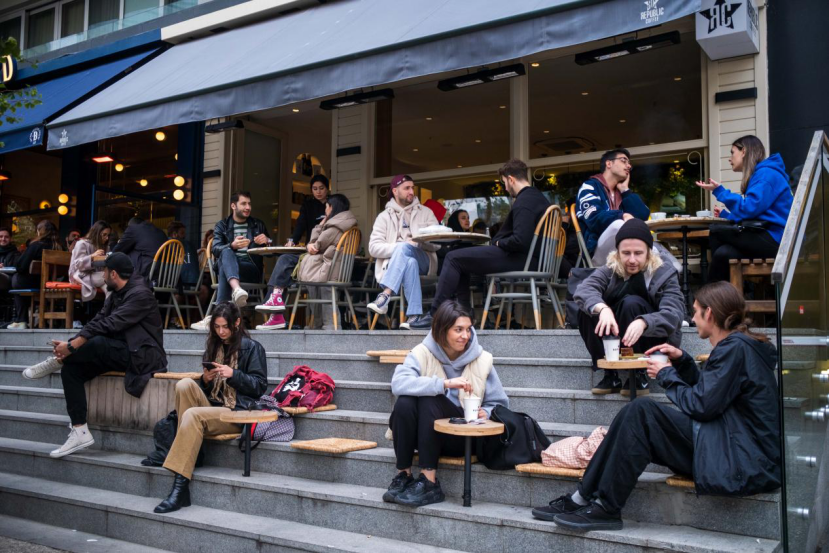 ● 週日,一家咖啡館外坐滿了年輕人
