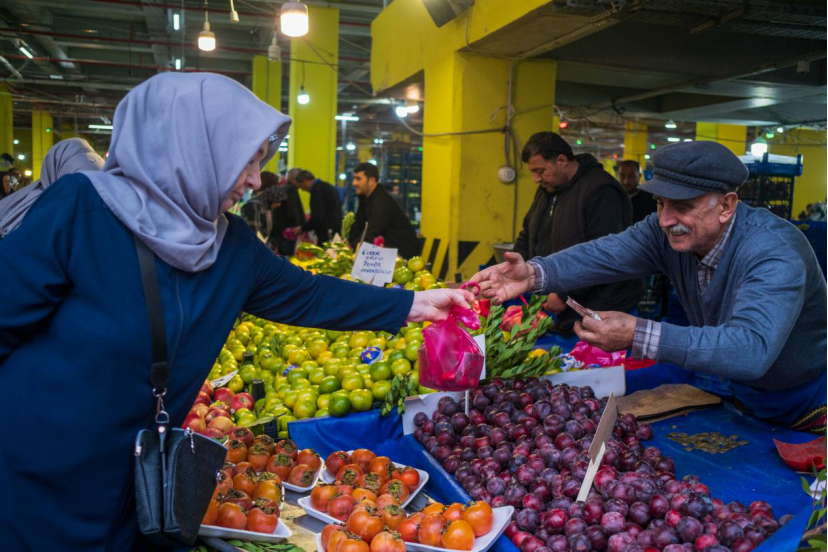 伊斯坦布爾的社區集市是瞭解老百姓消費狀況的最直觀場所,為此,我去了離我家較近的週四集市。這座封閉式集市裏有成排成列的攤位,售賣蔬果、水產、奶酪、香料和服飾等商品,以滿足周邊羣眾的日常所需。臨近黃昏,來這裏購物的人非常多,在一些過道上人們摩肩接踵,甚至因堵塞而穿行困難。這一社區住有很多敍利亞移民,所以集市的光顧者中也有很大比例的敍利亞人。我隨機問了一個蔬菜攤主——青年塞拉米,他説通貨膨脹極大地打擊了人們的購買力,以前人們更注重蔬果的質量,現在則更關注價格,購買量也大有減少。這樣一來,他的銷售量也隨之下降,他只能減少日進貨量,收入自然也減少了。他還説,市場上的很多蔬菜是從安塔利亞運輸來的,燃料價格的上漲也造成了運輸成本的增加。
