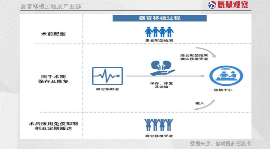每一階段都需要用到相應的醫療器械產品,比如術前術後檢測IVD產品、器官儲存/轉運器械產品等。