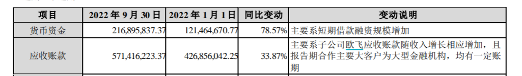 旗天科技在財報中説明,應收賬款增加的主要原因是子公司江蘇小旗歐飛科技有限公司應收賬款隨收入增長相應增加。