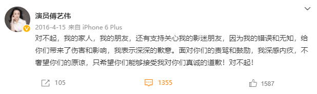 出獄後,傅藝偉在微博公開道歉,哪怕有零星的配角作品上線,也是低調再低調。