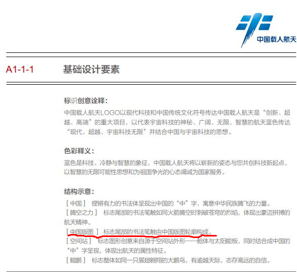 這是巧合?是我想多了?於是我檢索了載人航天官網的資料,找到了《中國載人航天工程形象管理手冊》(網址:http://www.cmse.gov.cn/gygc/gcwh/gcbs/),其中對LOGO要素的介紹如下: