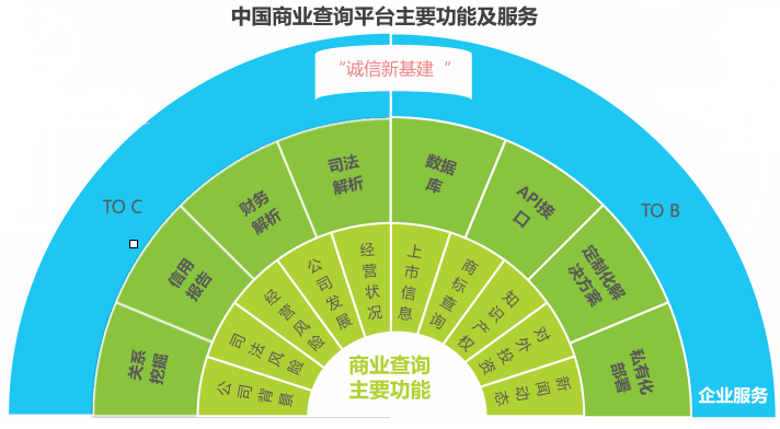 (圖:商業查詢平台的主要功能及服務,資料來源:艾瑞諮詢)