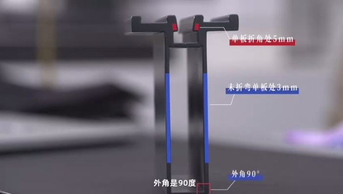 而且,傳統折彎技術把一塊材料彎過來,那外面這一側就會被拉伸。即便肉眼看不出來,它裏面的材料經過拉伸之後勢必變得稀疏,強度降低。所以在傳統鋼鐵冷彎工藝中有一個**“折彎係數”**的概念,就是需要平衡折彎角度和材料拉伸,不能拉過頭了。