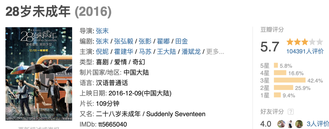 可她自己的處女座《28歲未成年》,豆瓣評分只有5.7,被指沒有繼承父親的天分。
