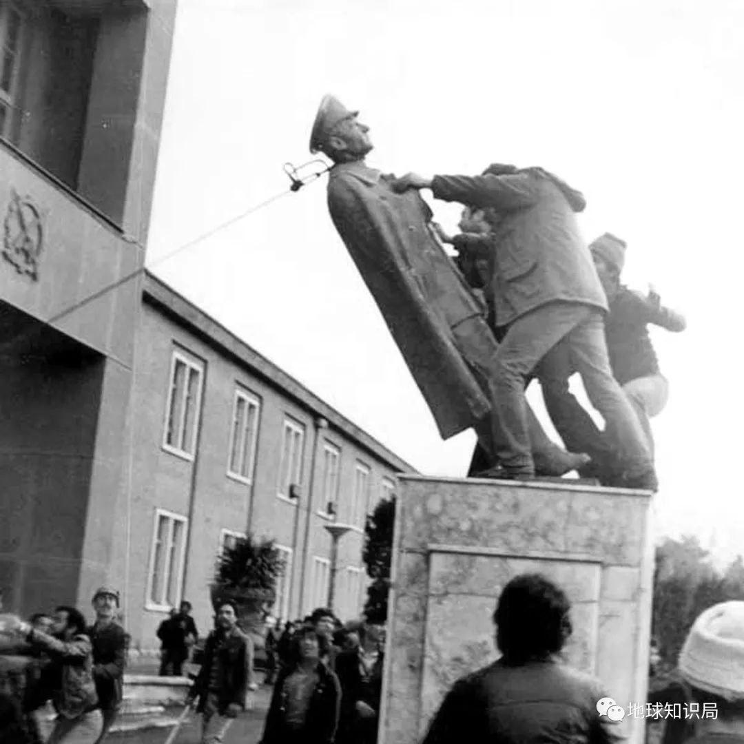 (伊朗人推倒國王雕像,圖:wiki)▼