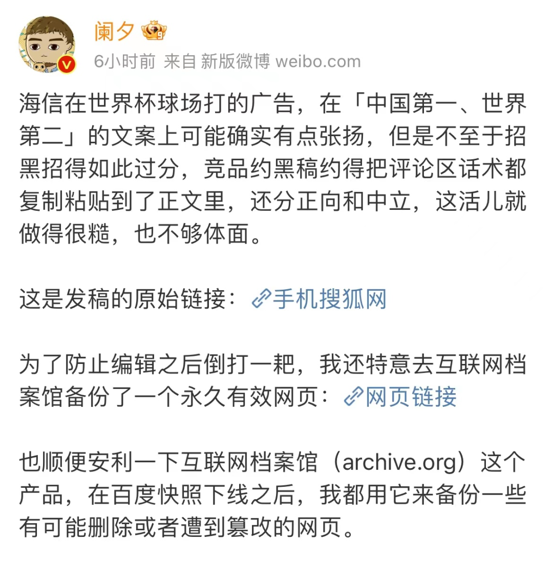 但就在這幾天,網上冒出了多篇批海信“自誇式營銷”的文章,矛頭所指正是這條廣告。