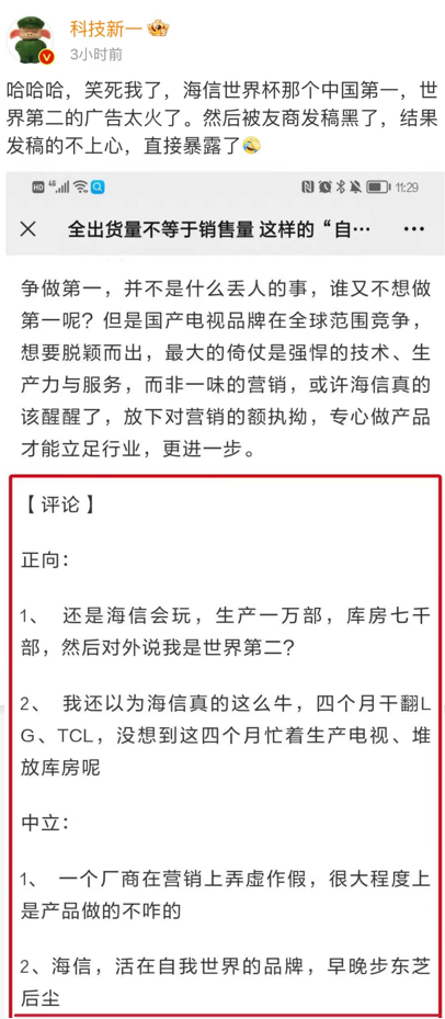 可其中一篇多少有些不走心:在批完海信“一味的營銷”“真的該醒醒了,放下對營銷的執拗”後,它一不小心把事先擬好的引導性評論都在文末發出來了。