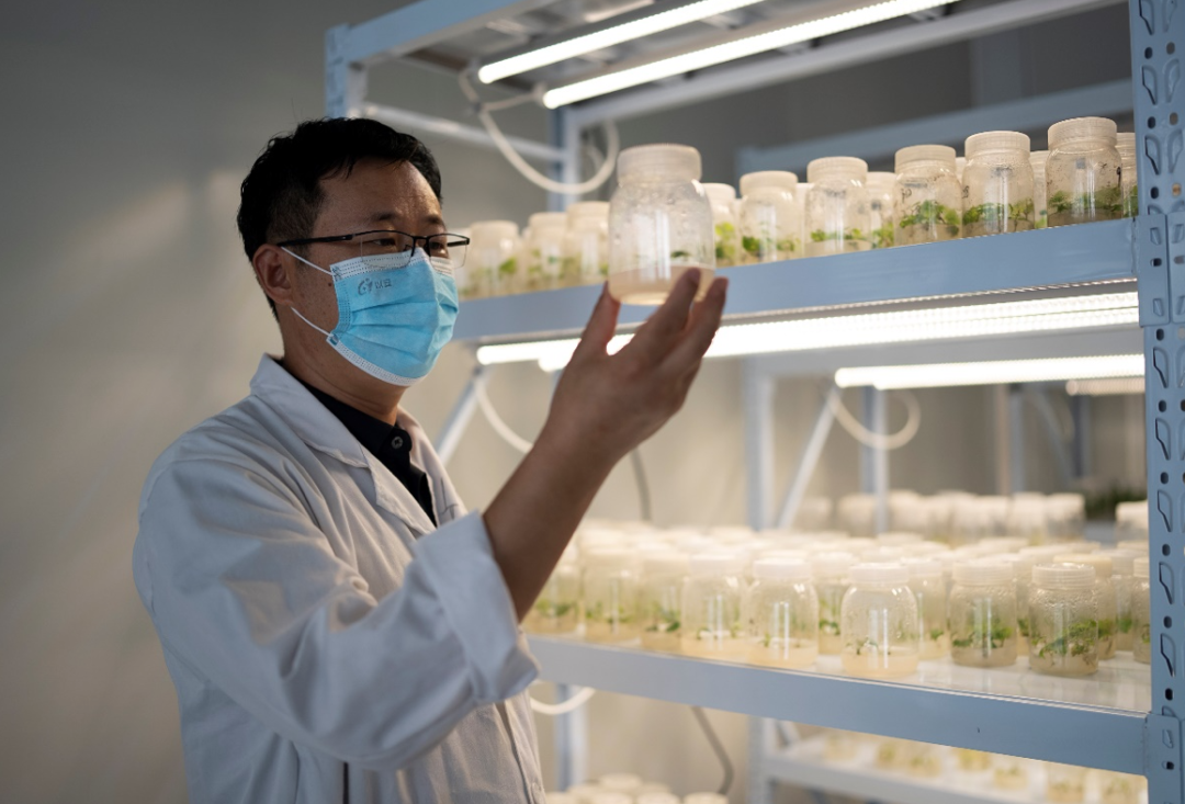 ▲ 圖:今年以來,拼多多加大投入,加速農業科技成果轉化。圖為煙薯25號育成人辛國勝正在進行脱毒種苗繁育,擴繁的種苗將供應給農户種植(凱馨|攝)