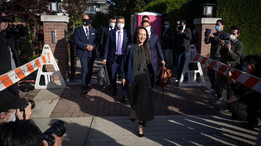 2021年9月25日:美國司法部與孟晚舟達成延後起訴協議,並通知加拿大撤回引渡要求;加拿大法院隨即終止了引渡程序,免去孟晚舟所有保釋條件並將她釋放、可以自由地離開加拿大;孟晚舟乘坐中國政府包機,離開加拿大回到中國。