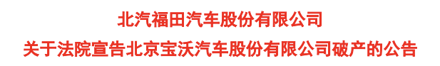 昨天早上,福田汽車發佈公告稱,北京寶沃汽車股份有限公司正式宣告破產。