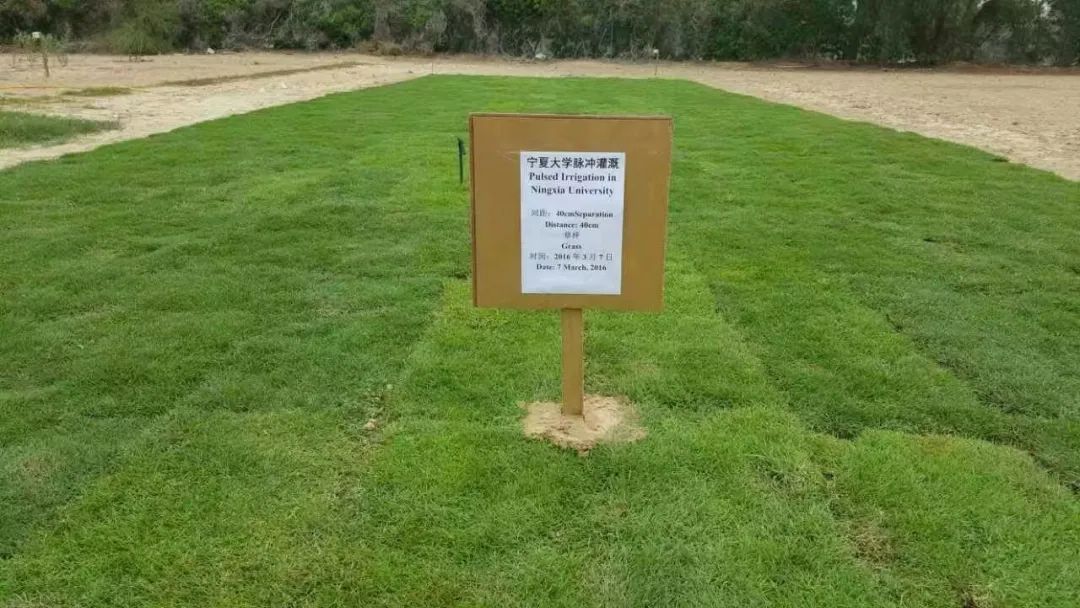 2016年,寧夏大學在阿曼卡布斯大學培育的脈衝式滲灌草坪。