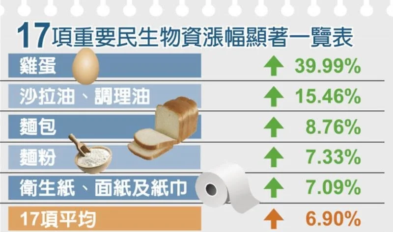 雞蛋不過是民進黨當局“什麼問題都沒解決”的一個縮影,飛漲的物價深深戳中了台灣民眾的“痛點”。據島內機構統計,目前台灣地區物價居高不下,10月民生物資漲幅擴大:麪包漲8.76%、創14年新高;衞生紙漲7%以上,為3年半最大漲幅。與民眾息息相關的民生消費品無一不漲,給台灣民眾——尤其是低收入家庭,帶來了更大的生存壓力。