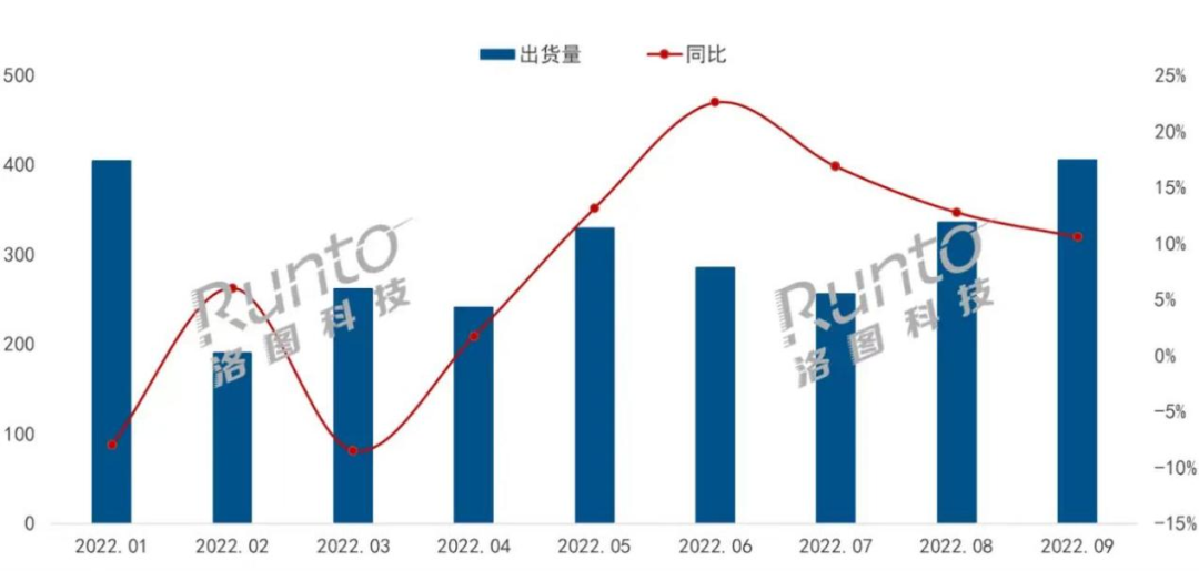 由於疫情影響,家庭場景迴歸主流市場,如今支撐OTT賽道高增長的是智能電視。根據洛圖科技發佈的《中國電視市場品牌出貨月度快報》數據顯示,2022年9月,中國電視市場品牌整機出貨量達到409萬台,同比增長11%,環比增長22%。