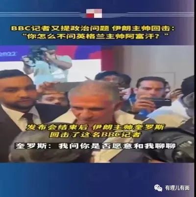 事後,這名BBC記者還把現場視頻放上推特“裝無辜”,稱自己只是要問伊朗球員關於他自己國家的問題卻被攔住了,絕口不提伊朗主教練的反問。