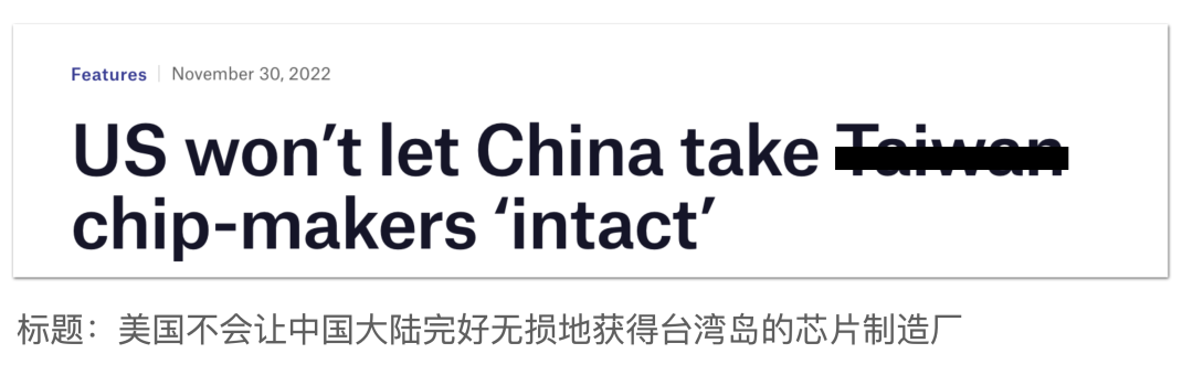 最嚴重的推論來自於兩個美國學者於2021年11月發表在《美國陸軍戰爭學院季刊》上的文章——這兩個學者認為:如果台海真的爆發戰爭,美國應當從物理上毀滅台積電,阻止大陸獲得任何相關技術。不過,拜登似乎對這建議並不感冒,所以目前來看還只是兩個美國學者的腦洞而已。
