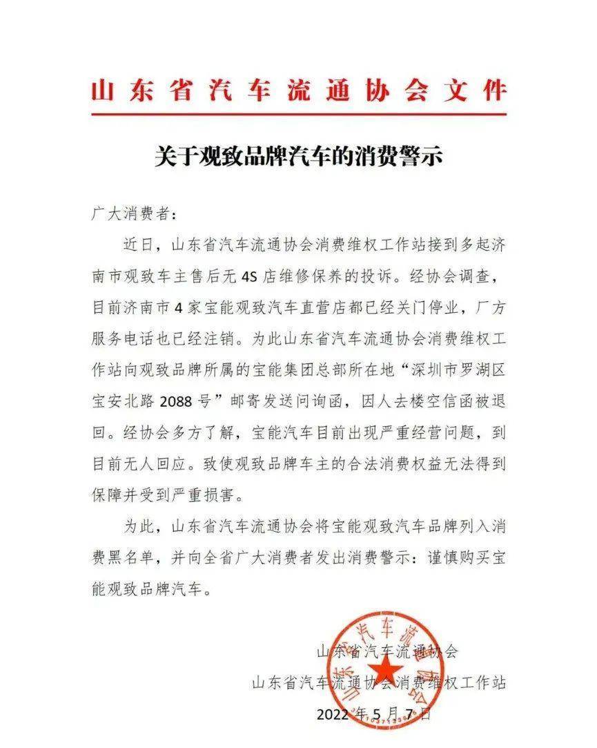 面對這樣的情況,2020年寶能提出了“千家直營店”計劃,計劃將觀致門店擴展至800家,但這些門店似乎也是“一紙空話”。去年以來,已有不少消費者投訴“新車找不到4S店保修”,今年6月,由於缺少售後服務網點,觀致更被列入消費黑名單。
