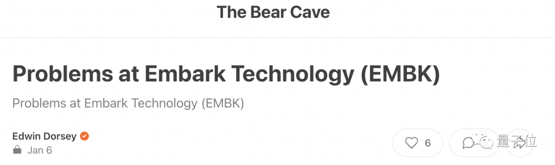 今年一月份,The Bear Cave的一份報告成為“壓垮”Embark的最後一根稻草,這份報告名為:Embark科技公司的問題,細數了這家公司的種種“罪狀”: