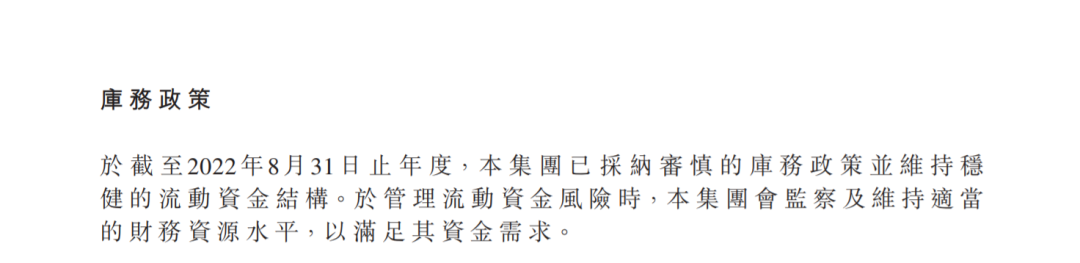 根據財報,截至2022年8月31日,中教控股持有的現金儲備為55.21億元,比2021財年末進一步增加近5億元。有息資產負債率為26.5%,比截至2021年8月31日的31.2%下降4.7個百分點。流動比率為0.81倍,雖然比上一財年末有所下滑,但如果將可換股債券計算在內,這項數據有所提升。中教控股也表示,公司已採納審慎的庫務政策並維持穩健的流動資金結構。管理流動資金風險出現時,集團會監察及維持適當的財務資源水平,以滿足其資金需求。