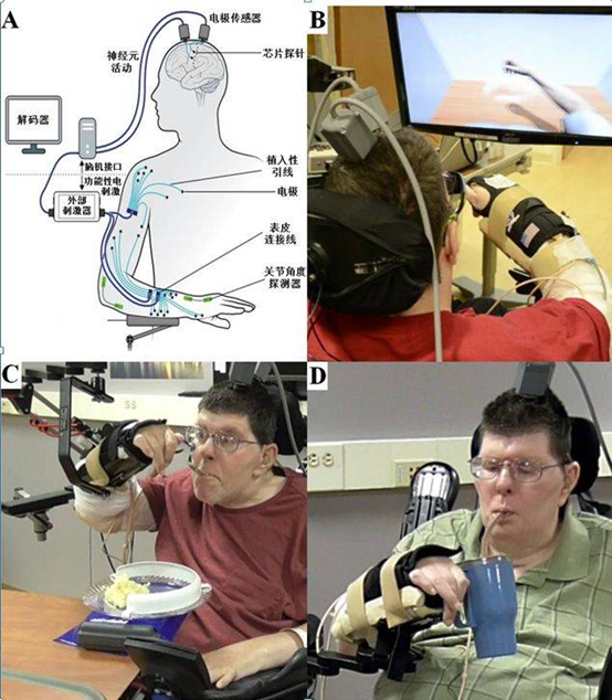 另一方面在民用領域,腦控義肢、腦控家電等可以幫助很多重殘者重新迴歸正常生活。同時腦機接口技術可以監測兒童的腦部活動,以便於及早發現一些心理症狀甚至是神經疾病。而且科學家還能使用腦機接口來判斷人的運動意願,並在相應的肌肉上施加電刺激來幫助患者重新構建大腦與目標肢體之間的神經信息通路,以幫助中風患者恢復肢體的功能。