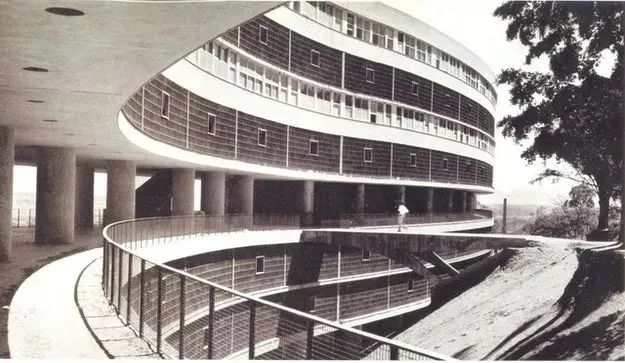 Filgueiras Lima 設計的展覽中心外表看起來就像一座 UFO,裸露的混凝土加上一些青苔,立面還有一座劇場,表達的就是當時人們對太空的探索慾望。