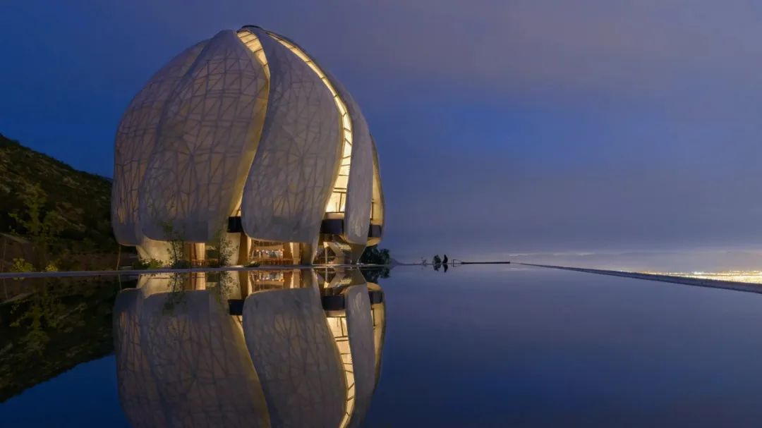 它是位於智利安第斯山腳下的巴哈伊神廟,由 Hariri Pontarini 事務所設計。