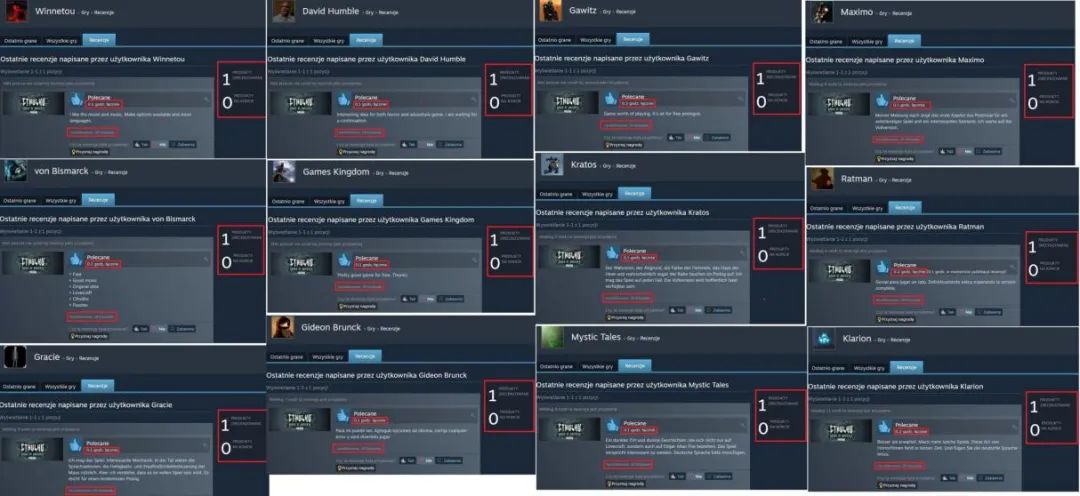 PolskiGamedev的編輯更是發現,每有一個正常玩家發佈差評,就會有多個Steam新帳户補上一條好評;一旦達到70%好評率,就不會再有新的好評增加,就像有某種算法一樣。在29日下架前,這部遊戲的好評率維持在71%左右。