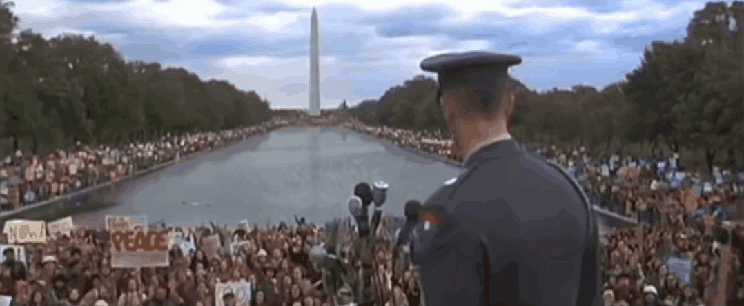 再比如阿甘在華盛頓發表演講這一段,如果想要達到下面這個規模,那高低得到周杰倫演唱會的級別了。