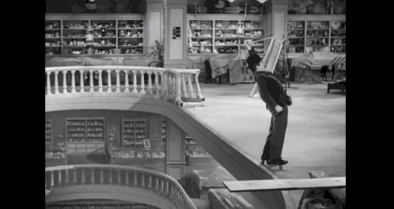 像《 卓別林 》裏非常經典的貼圖遮罩。在攝像機前面搭建一個場景,然後遮擋住攝像機的一角,就能把兩個場景拼接在一起。
